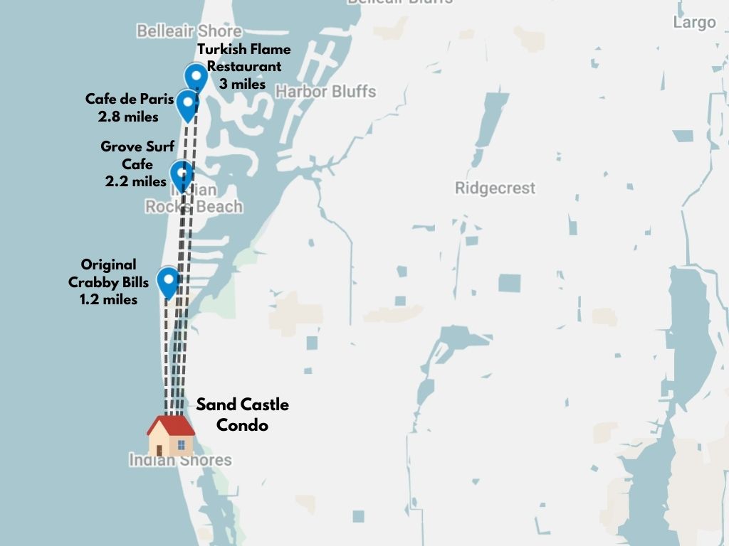 Located on the narrowest part of the island between the Gulf of Mexico and the Intracoastal Waterway, the condo is walking distance from Indian Shores' restaurants and shops. Island Marine Rentals is a convenient short walk for boat, bike, scooter, paddleboard and kayak rentals.