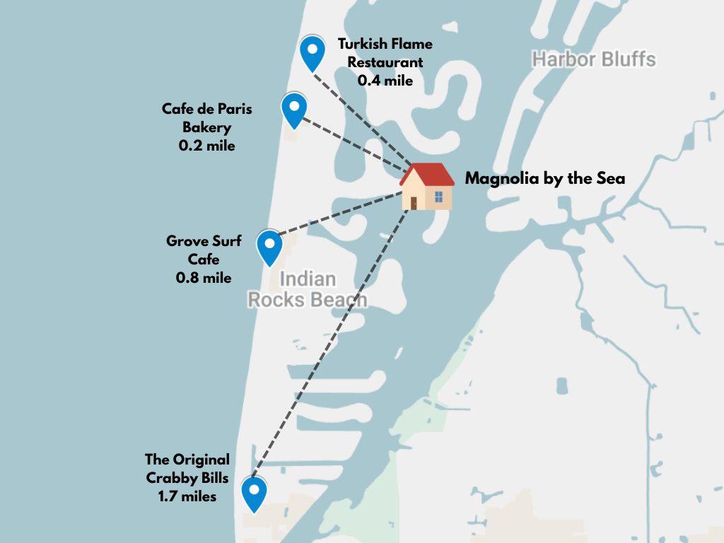 If you decide to explore beyond Indian Rocks Beach, you’ll enjoy visiting the nearby Clearwater Marine Aquarium, only seven miles away. If you want to hit up some urban bars and restaurants, you’ll love the unique vibes in downtown St. Petersburg or Tampa, either of which is a quick half hour drive away. Or take a drive up and down Gulf Blvd and explore all of the famous beach towns along the coast of Tampa Bay, including Dunedin, Clearwater, Treasure Island, and St. Pete Beach.