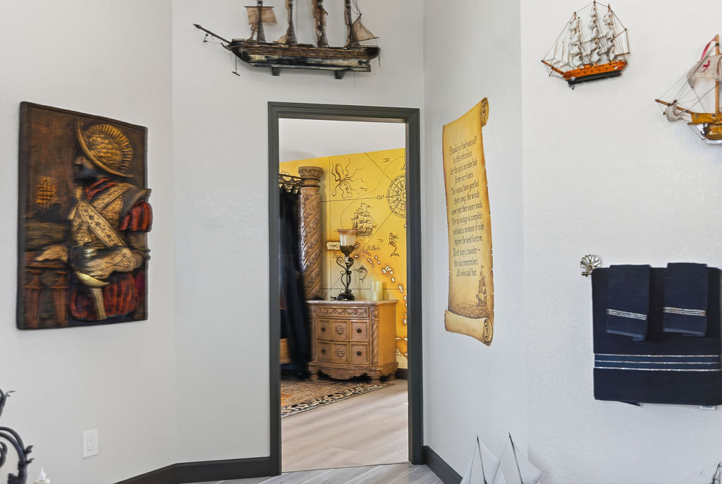 Captainâs Quarters â Groundâfloor suite withTHIS ROOM IS VIRTUALLY STAGED AND IN PROGESS: doors that open straigLet the sea breeze carry you off to dreams of treasure and triumph. A true captainâs domain where comfort meets adventure.