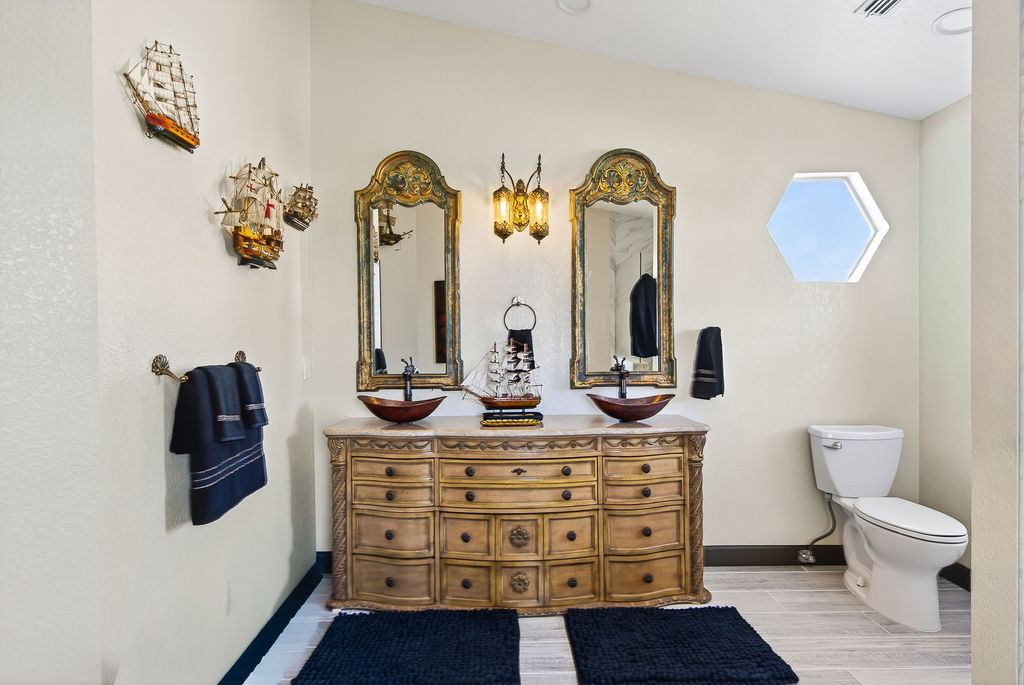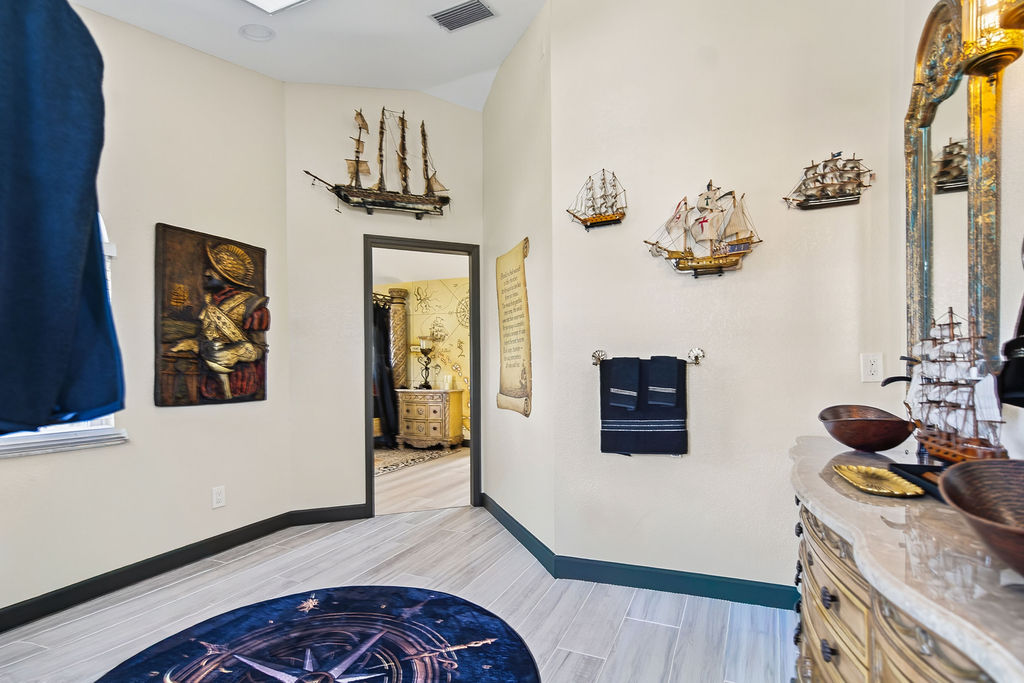 The Salty Shadow â A shared JackâandâJill bath with shower and twin vanity. Where mermaids and sea monsters cross paths, this hideaway keeps the crew fresh, polished, and ready for the next adventure.