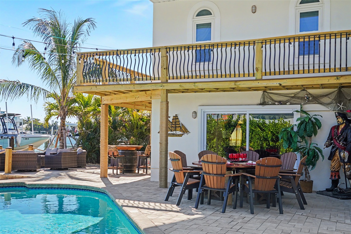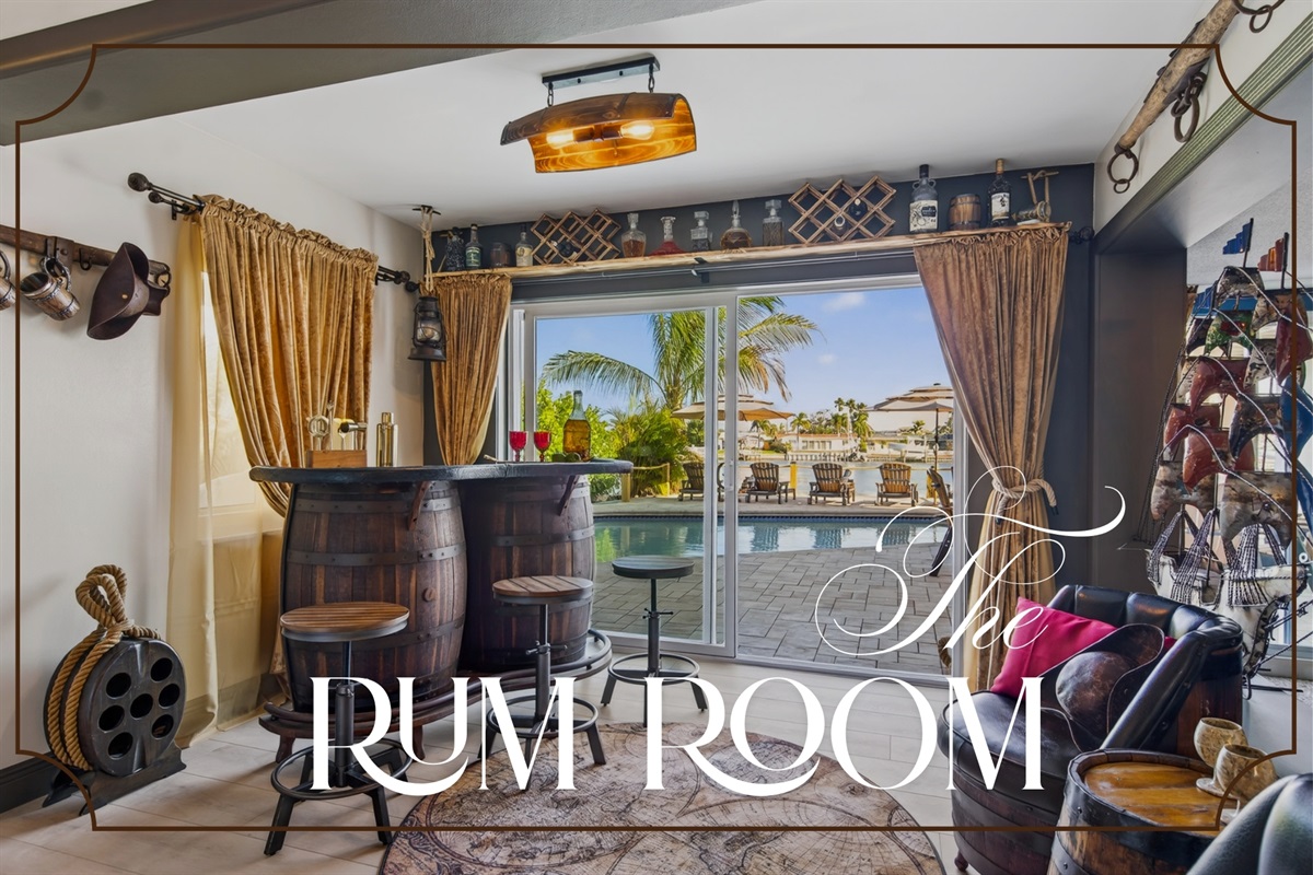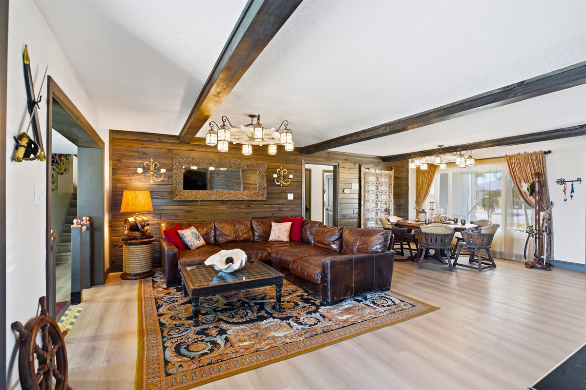 Indoor Fun: The home features a full kitchen with new appliances, Rum and game rooms with board games for evening entertainment and pirate cosplay.