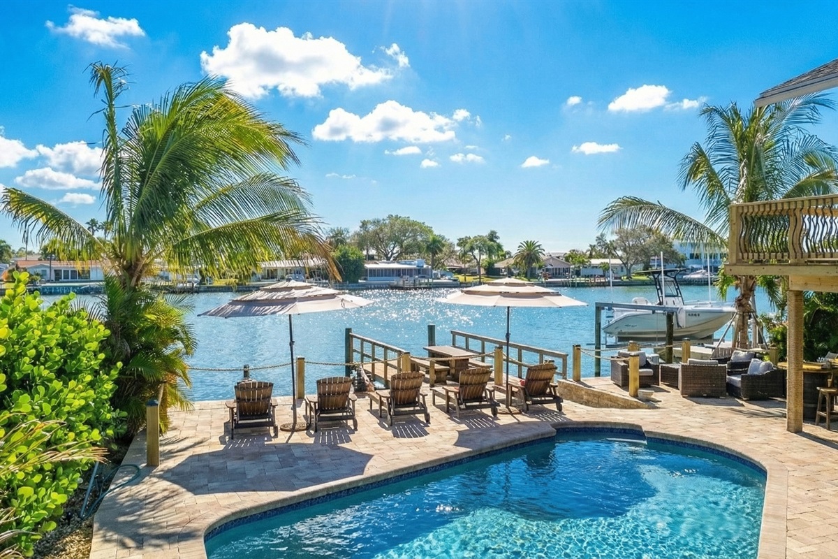 Chart your course for indulgence at *The Gilded Compass*, a mythic 5-bedroom, 4-bath waterfront estate where pirate legends meet modern elegance. Nestled along the shimmering shores of Indian Rocks Beach, this retreat offers everything a captain (or crew) could dream of ā from deep water dockage for your vessel to a heated pool fit for mermaids and marauders alike.